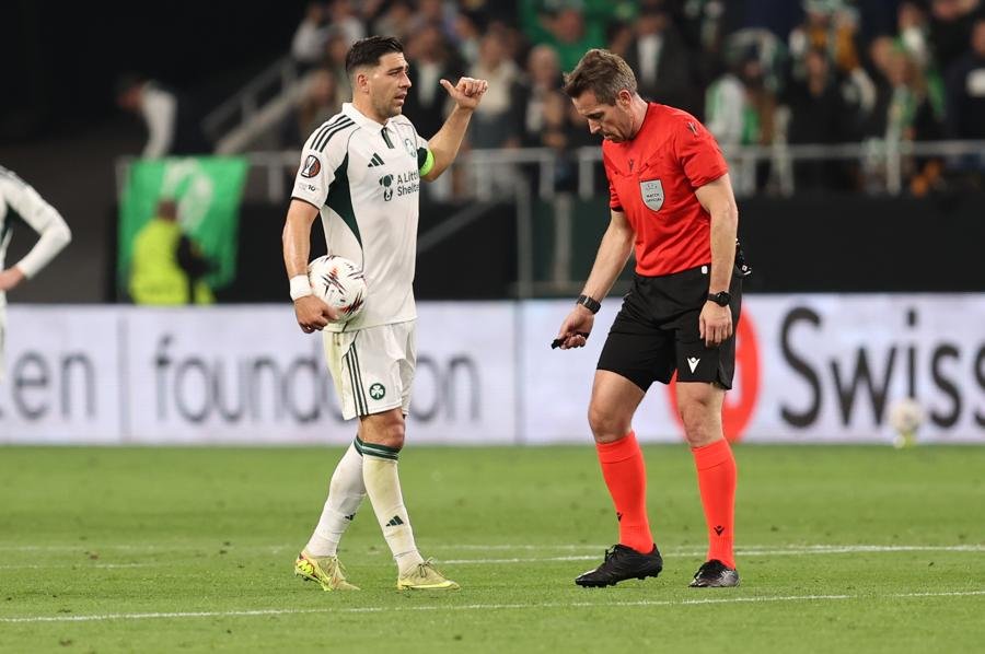 Οι φιλοξενούμενοι διαμαρτυρήθηκαν για οφσάιντ, με τον Γερμανό διαιτητή Στίλερ να εξηγεί στους ποδοσφαιριστές του Παναθηναϊκού πως "εξετάσαμε τη φάση αλλά διαπιστώσαμε ότι δεν υπάρχει οφσάιντ".