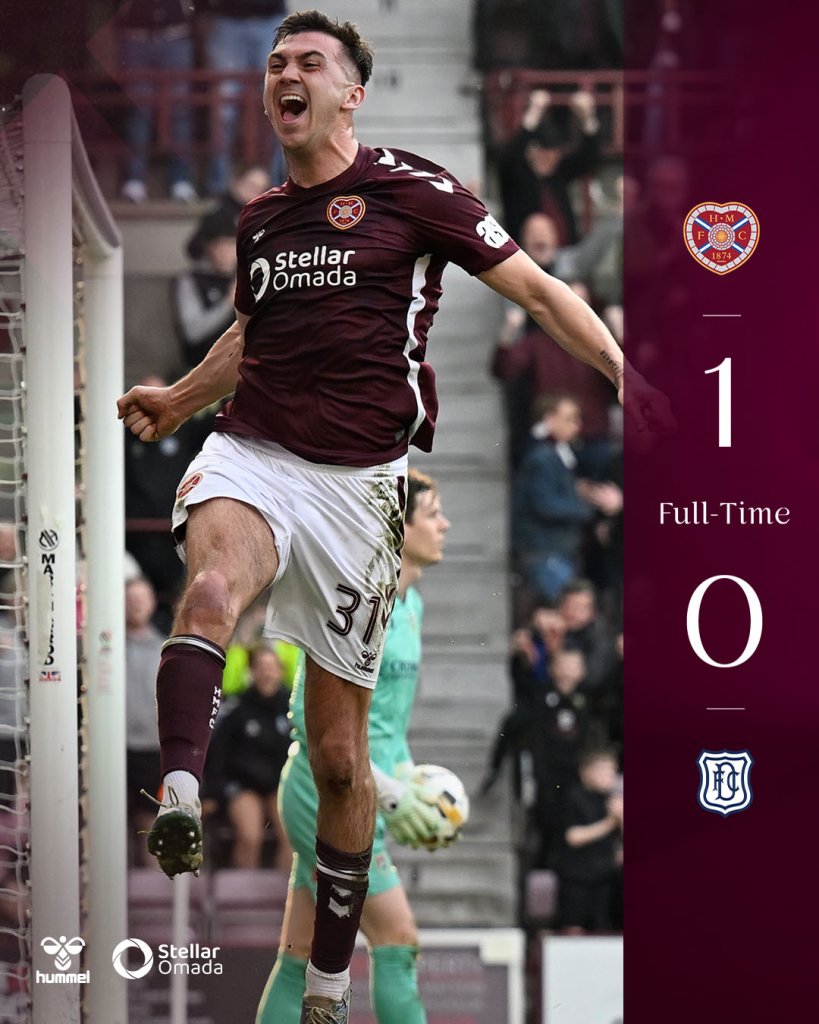 Λίγες μέρες μετά την ήττα από τη Κιλμάρνοκ, η Χαρτς νίκησε 1-0 τη Νταντί και διατηρείται στην κορυφή. Στο 77ο λεπτό, ο Μαρκ Λέοναρντ εκτέλεσε φάουλ και ο Ιρλανδός μπακ Όισιν Μάκεντι, με κεφαλιά, έκανε το 1-0. Σκορ που δεν άλλαξε μέχρι το φινάλε, παρότι η πρωτοπόρος έμεινε με δέκα παίκτες στο 90', λόγω αποβολής του Κεντ. Η Νταντί μετρούσε αήττητο πέντε αγώνων, αλλά, η Χαρτς δείχνει αποφασισμένη για τον πρώτο της τίτλο, μετά το 1960.