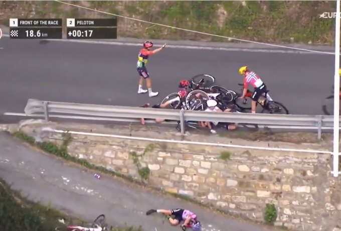 Η ανάσα όλων κόπηκε, όταν η Ντέμπορα Σιλβέστρι στην προσπάθεια της να αποφύγει να πέσει πάνω στα ποδήλατα, έχασε τον έλεγχο και πέρασε πάνω από τις προστατευτικές μπαριέρες, με αποτέλεσμα να πέσει από μεγάλο ύψος.