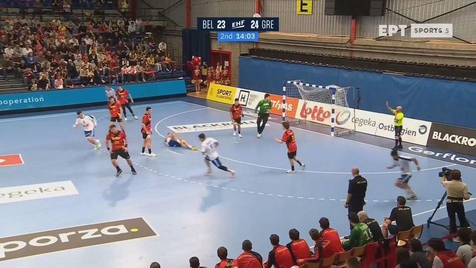 Στο 28-28 ο Μπόσκος έχασε πέναλτι, οι Βέλγοι είχαν δοκάρι, με τον Τόσκα να βάζει μπροστά την Ελλάδα (28-29). Οι γηπεδούχοι ισοφάρισαν (29-29), αλλά ακολούθησαν δύο φοβερές εκτελέσεις από τους Μπόσκο και Παναγιώτου (με κερδισμένο δίλεπτο) για το 29-31 στο 55’. Ακολούθησε σπουδαία επέμβαση από τον Μπουκοβίνα σε τε α τετ από θέση πίβοτ και στη συνέχεια ο Τόσκας έκανε το 29-32 (58’), κλειδώνοντας τη νίκη- πρόκριση για την Εθνική που ήρθε με το τελικό 31-34