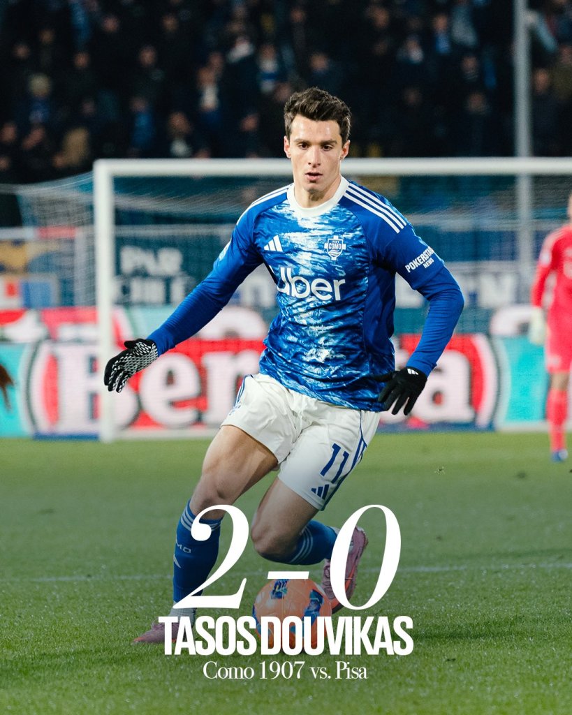 Με πέντε διαδοχικές νίκες, η Κόμο όχι μόνο έχει εξαιρετικές πιθανότητες να πάρει ευρωπαϊκό εισιτήριο, αλλά, έχει κάθε δικαίωμα να ονειρεύεται συμμετοχή στο Champions League. Με τον Τάσο Δουβίκα να σκοράρει και να φτάνει τα 11 γκολ, η ομάδα του Φάμπρεγας επιβλήθηκε 5-0 της Πίζας και παραμένει στη τέταρτη θέση.