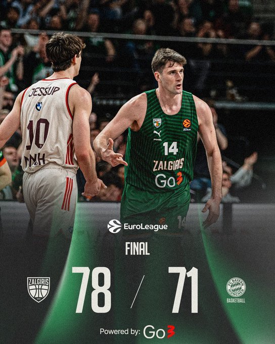 Στις κρίσιμες στιγμές, η ομάδα του Κάουνας ήταν ψύχραιμη και με 2/2 του Γκος επέστρεψε στο +7 με 78-71, με λιγότερο από δύο λεπτά να απομένουν. Με το αποτέλεσμα του αγώνα να είναι προδιεγραμμένο από νωρίς, η Ζαλγκίρις πανηγύρισε μία ακόμη πολύτιμη νίκη με 78-71, βελτιώνοντας το ρεκόρ της στο 19-14, την ίδια στιγμή που η Μπάγερν έπεσε στο 13-20.