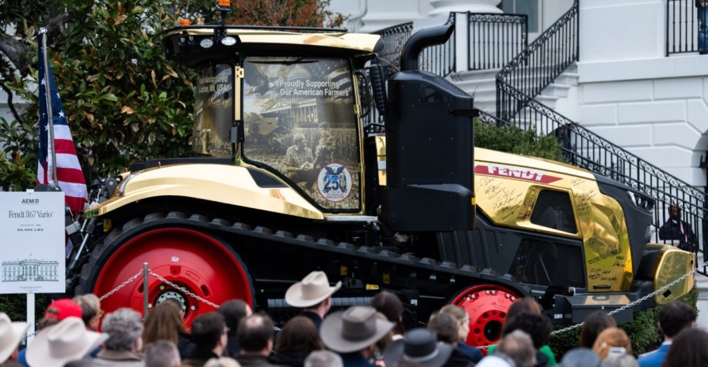 Περίπου 800 αγρότες και κτηνοτρόφοι, πολλοί από αυτούς φορώντας καουμπόικα καπέλα, βρέθηκαν στον Λευκό Οίκο, όπου στον κήπο είχαν σταθμεύσει και τρακτέρ, με ένα χρυσό να τραβά περισσότερο από όλα τα βλέμματα.