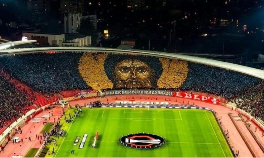 Οι οπαδοί του Ερυθρού Αστέρα εκτός από το κορεό θρησκευτικού περιεχομένου είχαν και ένα πανό με μήνυμα σε αυτό: «Ας σε οδηγήσει η πίστη στη νίκη».