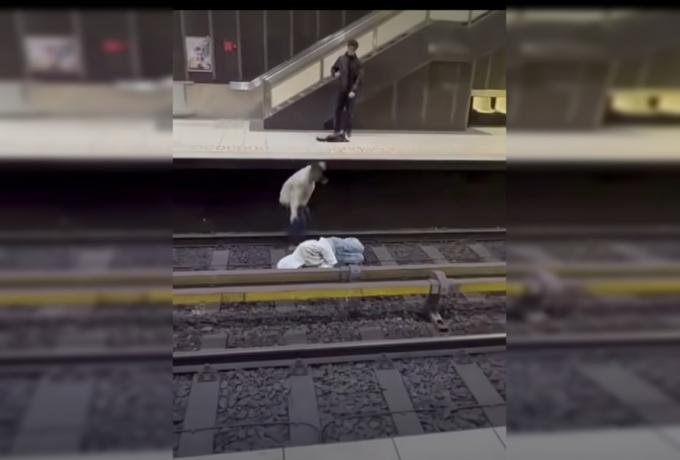 Ο τελευταίος κατάφερε να ακινητοποιήσει τον συρμό και τότε δύο άτομα κατέβηκαν στις ράγες και τράβηξαν πάνω με το ζόρι τον άνδρα.