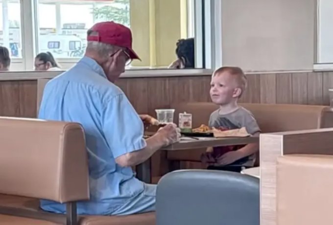 Συγκίνηση προκαλεί το βίντεο που αναρτήθηκε στο TikTok με έναν 3χρονο στην Οκλαχόμα να βλέπει έναν ηλικιωμένο που δεν γνώριζε να τρώει μόνος του και στη συνέχεια να παίρνει το φαγητό του για να του κάνει παρέα.