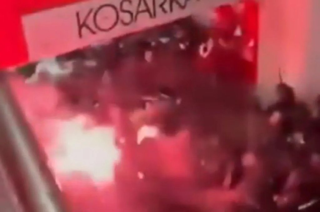 Συγκεκριμένα, σημειώθηκαν συμπλοκές, ανάμεσα σε οπαδούς και αστυνομικούς, με βίντεο, που βγήκαν στη δημοσιότητα, να δείχνουν φωτοβολίδες και μάχες σώμα με σώμα.
