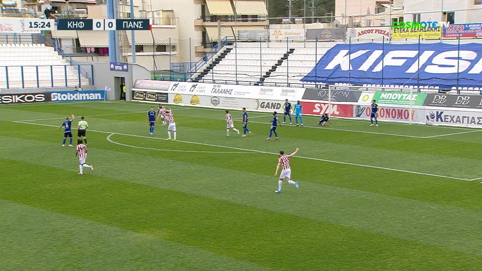 Ο Τσαούσης εκτέλεσε με δυνατό σουτ από τα όρια της περιοχής, μετά από σέντρα από τα δεξιά και έστειλε την μπάλα στα δίχτυα