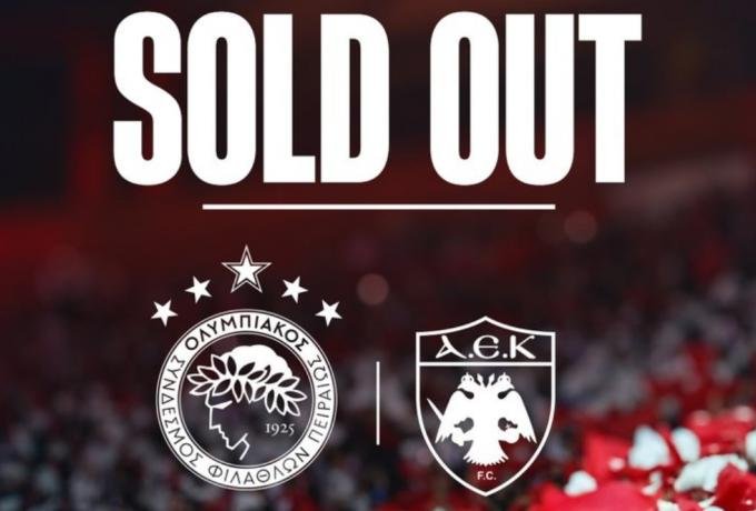 Ο Ολυμπιακός ανακοίνωσε ότι εξαντλήθηκαν όλα τα διαθέσιμα εισιτήρια για το ντέρμπι της πρώτης αγωνιστικής των play offs με την ΑΕΚ στο Φάληρο (5/4, 21:00). Αυτό σημαίνει πως υπάρχει Sold out και το Καραισκάκη θα ειναι γεμάτο.