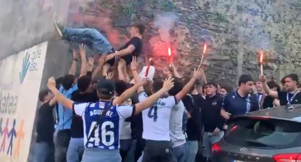 Ibai Aguirre (19) made his Real Sociedad debut today. When he went back home, a whole group of friends waited for him. What an incredible feeling that must of been for him. pic.twitter.com/uTMWbGVfWj