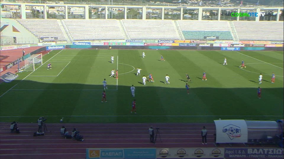 Πρώτη τελική για τον Βόλο, πλασέ εκτός περιοχής από τον Λάμπρου που περνάει πάνω από την εστία του Χριστογεώργου.