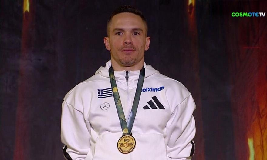 Στο υψηλότερο σκαλί του βάθρου ανέβηκε ο Λευτέρης Πετρούνιας, που κατέκτησε το χρυσό μετάλλιο, στο αγώνισμα των κρίκων, στο Παγκόσμιο Κύπελλο Ενόργανης Γυμναστικής στο Κάιρο.