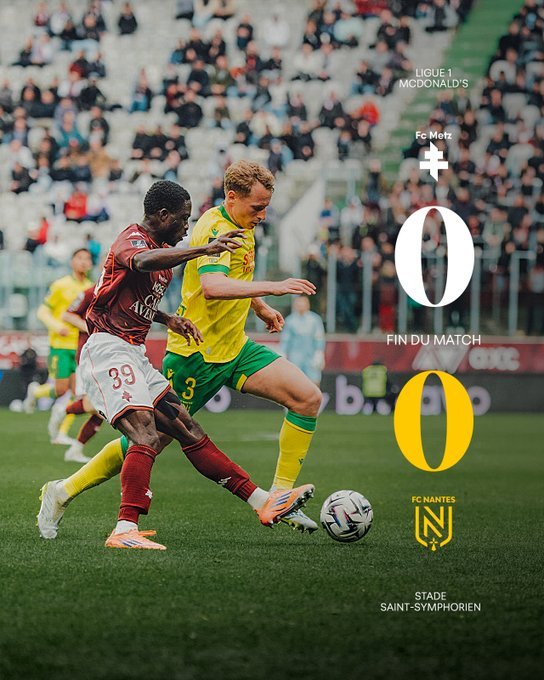 Μετς και Ναντ κόλλησαν στο 0-0 και παρέμειναν στις τελευταίες θέσεις της βαθμολογίας. Στο 39’ η Ναντ έμεινε με δέκα ποδοσφαιριστές, λόγω αποβολής του Τάτι, με τη Μετς να έχει ακυρωθέν γκολ στο 67’ και το 90+6’ με τον Χέιν.