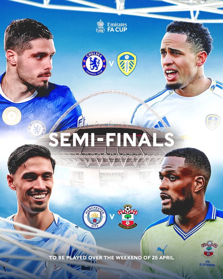 Και αυτό γιατί η Μάντσεστερ Σίτι κληρώθηκε να αντιμετωπίσει την Σαουθάμπτον της Championship (το Σάββατο έκανε τεράστια έκπληξη πετώντας εκτός συνέχειας την Άρσεναλ) και η Τσέλσι θα κοντραριστεί με την Λιντς, με τους πολίτες και τους μπλε να έχουν τον πρώτο λόγο για να περάσουν στον τελικό που θα διεξαχθεί στις 16 Μαΐου στο “Γουέμπλεϊ”.