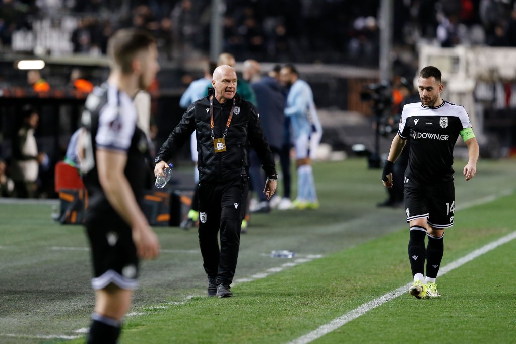 Για το τι έλειψε από τον ΠΑΟΚ: «Ευχαριστούμε για τις σκέψεις όσον αφορά τον κύριο Μιρτσέα. Σίγουρα στο πρώτο ημίχρονο, μπορούσαμε να κάνουμε κάτι παραπάνω ενεργειακά κυρίως. Δεν «αδικώ» κανέναν παίκτη γιατί ήταν κάτι ομαδικό. Πως έκλειναν οι αντίπαλοι και είχαν το μυαλό στους στην αντεπίθεση. Υπήρχε πολλή... κίνηση και οι πάσες μας ήταν αργές. Πιστεύω στο δεύτερο ημίχρονο και μετά το 65' είχαμε καλή αντίδραση, κάναμε καλές ενέργειες. Ήταν δύσκολο και σκληρό παιχνίδι, όπως αρμόζει στα πλέι οφ. Χάσαμε 1-2 καλές ευκαιρίες με τον Μπάμπα και τον Γερεμέγιεφ, μετά την εξαιρετική ασίστ του Κωνσταντέλια. Ισορροπημένο παιχνίδι».