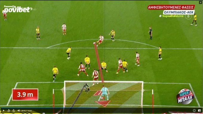 Με γραμμή δικής του εφευρέσεως «απέδειξε» ότι ο Στρακόσα έβλεπε την μπάλα και δεν τον εμπόδιζε ο Πιρόλα. Μπορεί η πορεία της μπάλας να ήταν διαφορετική από τη «Σπάθια γραμμή» όμως αυτό είναι λεπτομέρεια που δεν τον εμπόδισε. Ο Σπάθας έκρινε ότι ο Πιρόλα δεν εμπόδιζε τον Στρακόσα κι ας ήταν μπροστά του και χρειάστηκε να μετακινηθεί για να τον βρει η μπάλα. Η «Σπάθια γραμμή» είναι που μετράει και τίποτα άλλο. Προς τιμή του βέβαια ο τηλεδιαιτητής του Mega παραδέχθηκε ότι δεν ήταν εύκολη φάση, δείχνοντας την μεγαλοψυχία του.