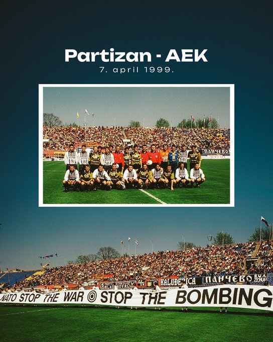 «Μόλις δύο εβδομάδες πέρασαν από τη στιγμή που άρχισαν να πέφτουν οι πρώτες βόμβες στην Ομοσπονδιακή Δημοκρατία της Γιουγκοσλαβίας μέχρι τη στιγμή που διεξήχθη ο φιλικός αγώνας Παρτιζάν - ΑΕΚ, και έχουν περάσει 27 ολόκληρα χρόνια από εκείνη την 7η Απριλίου 1999. Φαίνεται απίστευτο, αλλά πραγματικά έχει περάσει τόσος καιρός από τότε που οι κιτρινόμαυροι από την Αθήνα ήρθαν να μας επισκεφτούν, ώστε να μπορέσουμε μαζί να στείλουμε ένα μήνυμα ειρήνης και να απευθύνουμε έκκληση στη συμμαχία του ΝΑΤΟ να σταματήσει τους βομβαρδισμούς της χώρας μας.