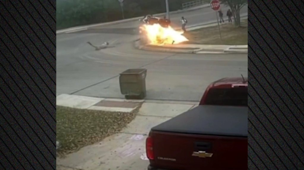 A motorcycle exploded and nearly slammed into children after it slid off a road and hit a curb in Bexar County, Texas. The rider managed to escape the explosion. pic.twitter.com/VjMJe4sflq