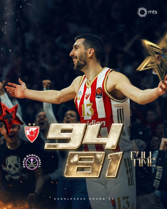 Ο Ερυθρός Αστέρας επικράτησε της Παρί στο Βελιγράδι με 94-81 για την 36η αγωνιστική της EuroLeague, με τους Μονέκε και Μίλερ-ΜακΙντάιρ να ηγούνται της προσπάθειας των γηπεδούχων.