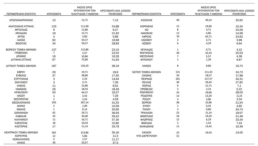 Αναλυτικότερα τα κρούσματα στις περιφερειακές ενότητες που ανήκουν στην Αττική: