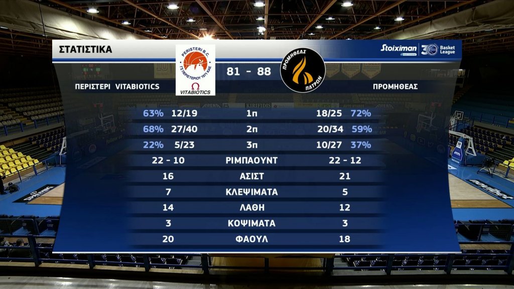 Tα highlights του Περιστέρι - Προμηθέας Πάτρας (VIDEO)
