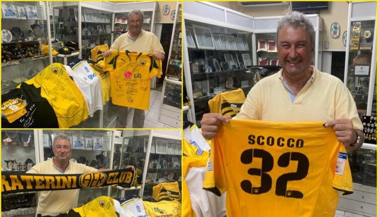 Μεταξύ αυτών φανέλα με τις υπογραφές των μεγάλων θρύλων της ομάδας μας, μια φανέλα φορεμένη και υπογεγραμμένη από τον Νάτσο Σκόκο, φανέλες και αναμνηστικά του ΣΦ ΑΕΚ Κατερίνης και άλλα πολλά αποδεικνύοντας για μία ακόμα φορά την πίστη και την αφοσίωσή του στην αγαπημένη του ομάδα.