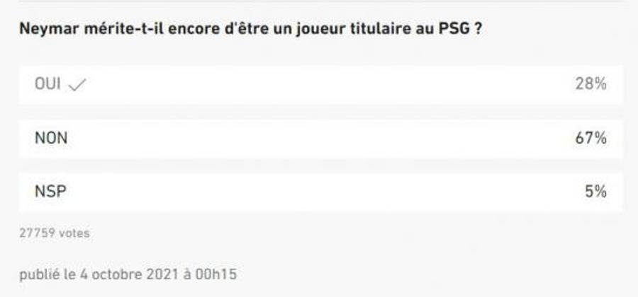 Με αφορμή λοιπόν την κακή του παρουσία στην ήττα από τη Ρεν (που ήρθε να προστεθεί στον φτωχό απολογισμό του 1 γκολ και των 2 ασίστ μέχρι τώρα στη σεζόν), η έγκυρη γαλλική εφημερίδα απηύθυνε το ερώτημα αν πρέπει να ξεκινάει στην ενδεκάδα. Κάτι που απαντήθηκε με εμφατικό τρόπο από τους συμμετέχοντες, καθώς η επιλογή «όχι» σχημάτισε… κυβέρνηση αυτοδυναμίας με ποσοστό 67%.