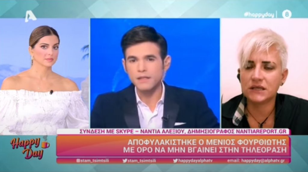 Όπως αποκάλυψε στο Happy Day η Σταματίνα Τσιμτσιλή, ο Μένιος Φουρθιώτης λίγο μετά την αποφυλάκισή του έσπασε το πόδι του.