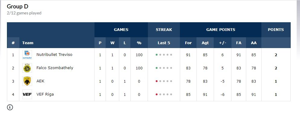 H βαθμολογία του ομίλου της ΑΕΚ (ΦΩΤΟ)