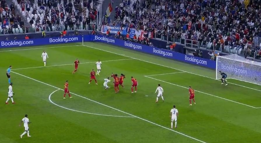 Στο 62’ ο Μπενζεμά γύρισε πανέμορφα από το ύψος του πέναλτι και με σουτ έγραψε το 2-1.