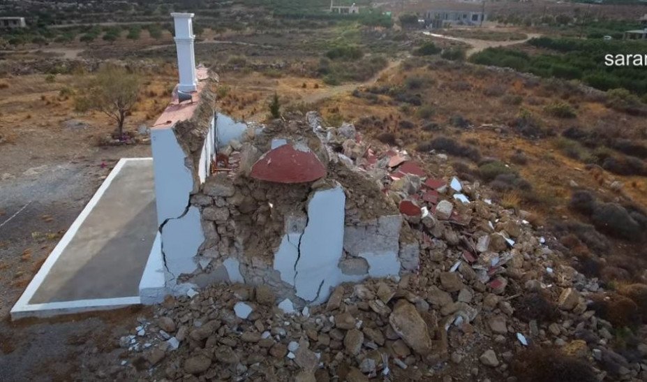 Το εκκλησάκι του Αγίου Νικολάου δεν άντεξε το πέρασμα του Εγκέλαδου και κατέρρευσε, ευτυχώς χωρίς ανθρώπινες απώλειες.
