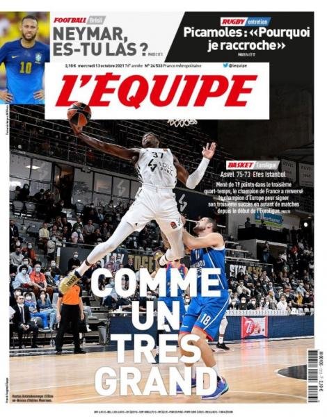 Έτσι, η γαλλική εφημερίδα Equipe είχε, στο πρωτοσέλιδό της, τον Έλληνα σέντερ, κεντρική φωτογραφία, και έγραψε "Σαν μεγάλη ομάδα".