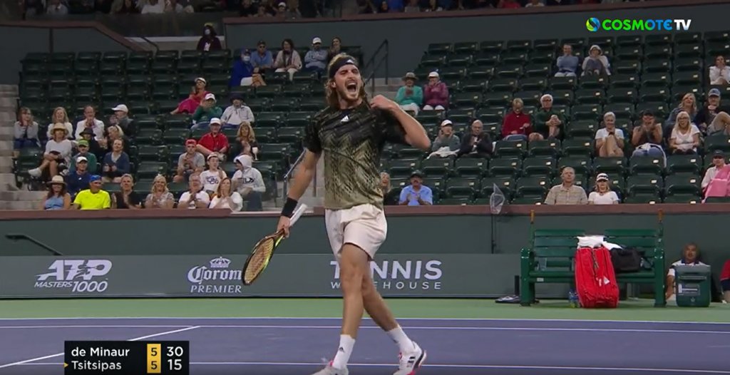 Για δεύτερη φορά, μέσα σε ένα 24ωρο, ο Έλληνας πρωταθλητής πέτυχε και δεύτερη ανατροπή, νίκησε 2-1 σετ τον Ντε Μινόρ και προκρίθηκε στα προημιτελικά του Indian Wells