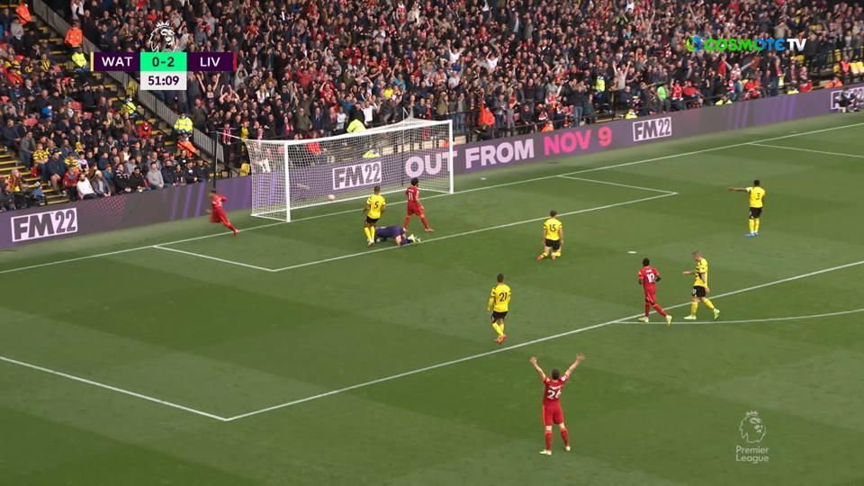 Η ομάδα του Γιούργκεν Κλοπ όμως δεν σταμάτησε εκεί. Ο Σάλαχ έπειτα από μία πανέμορφη ενέργεια, άδειασε δύο αντιπάλους και με ένα γλυκό πλασέ από δύσκολη γωνία, ανέβασε το δείκτη του σκορ στο 4-0.