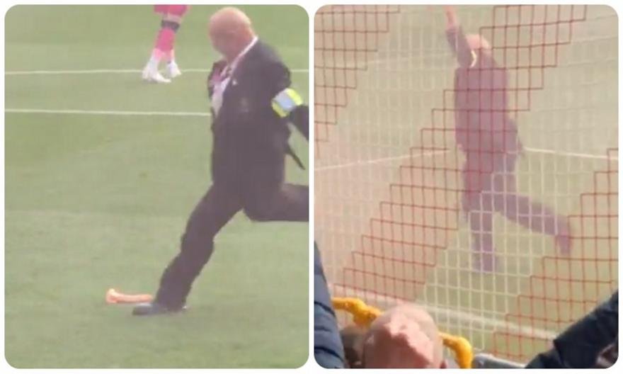 Την αποθέωση, από τον κόσμο στις εξέδρες, γνώρισε άνθρωπος της ασφάλειας του γηπέδου, στο ματς Λίνκολν-Τσάρλντον, για τη League One της Αγγλίας.