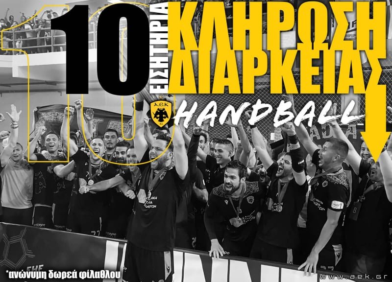 Η Ερασιτεχνική ΑΕΚ ξεκινάει διαγωνισμό για 10 εισιτήρια διαρκείας για το χάντμπολ, έπειτα από ανώνυμη δωρεά οπαδού της.