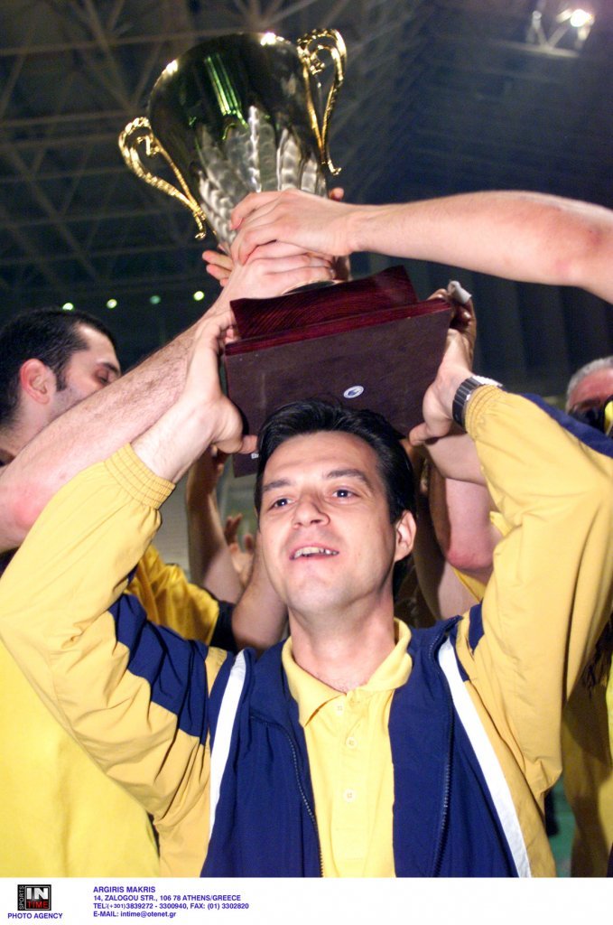 **Στην ένθετη φωτό, ο Κώστας Καπούρος με το τρόπαιο της κατάκτησης του Κυπέλλου Ελλάδος 2001 στα χέρια.