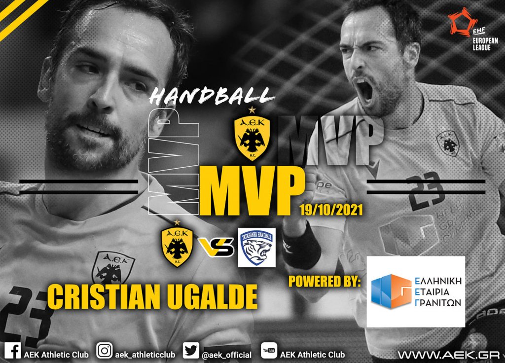 Η ομάδα χάντμπολ της ΑΕK ξεκίνησε με νίκη τις υποχρεώσεις της στους Ομίλους του EHF European League. Από το σημερινό παιχνίδι με την Ταταμπάνια ξεχώρισε με την εμφάνισή του ο Κριστιάν Ουγκάλντε, ο οποίος μάλιστα πέτυχε και τρια γκολ. Ο Ισπανός εξτρέμ ήταν αυτός που αναδείχθηκε πολυτιμότερος παίκτης, MVP «Ελληνική Εταιρεία Γρανιτών» του σημερινού αγώνα.
