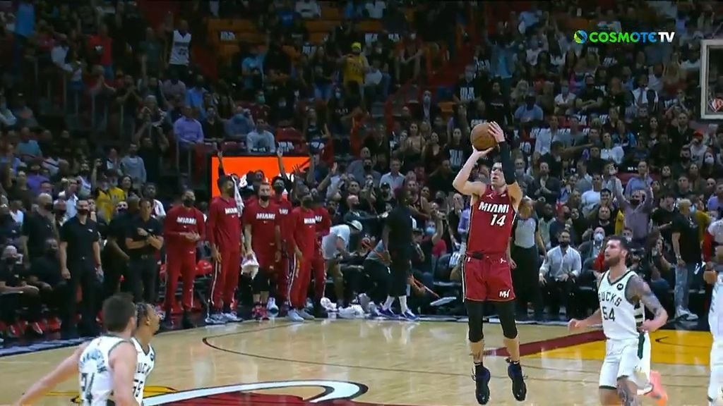 Πρώτα ο 21χρονος γκαρντ των Χιτ πίεσε τον Νόουρα των Μπακς να αστοχήσει σε κάρφωμα και, στη συνέχεια, στη λήξη του χρόνου ευστόχησε σε τρίποντο από απόσταση