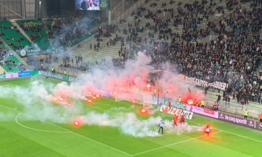 Χαμός έγινε στο ματς της Σεντ Ετιέν με την Ανζέ, με αποτέλεσμα να υπάρξει μεγάλη καθυστέρηση! Οπαδοί της Σεντ Ετιέν άναψαν πολλά καπνογόνα και τα έριξαν στον αγωνισστικό χώρο, με αποτέλεσμα ο χλοοτάπητας σε μερικά σημεία του να καεί!