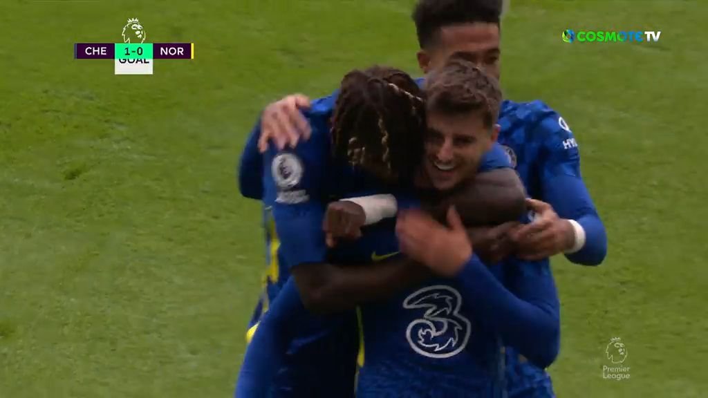 Η Τσέλσι έψαξε κι άλλο γκολ στο πρώτο ημίχρονο και το βρήκε στο 42΄με τον Ρις Τζέιμς να σκάβει όμορφα τη μπάλα πάνω από τον Κρουλ και να διαμορφώνει το 3-0 λίγο πριν οι δύο ομάδες αποχωρήσουν για τα αποδυτήρια.