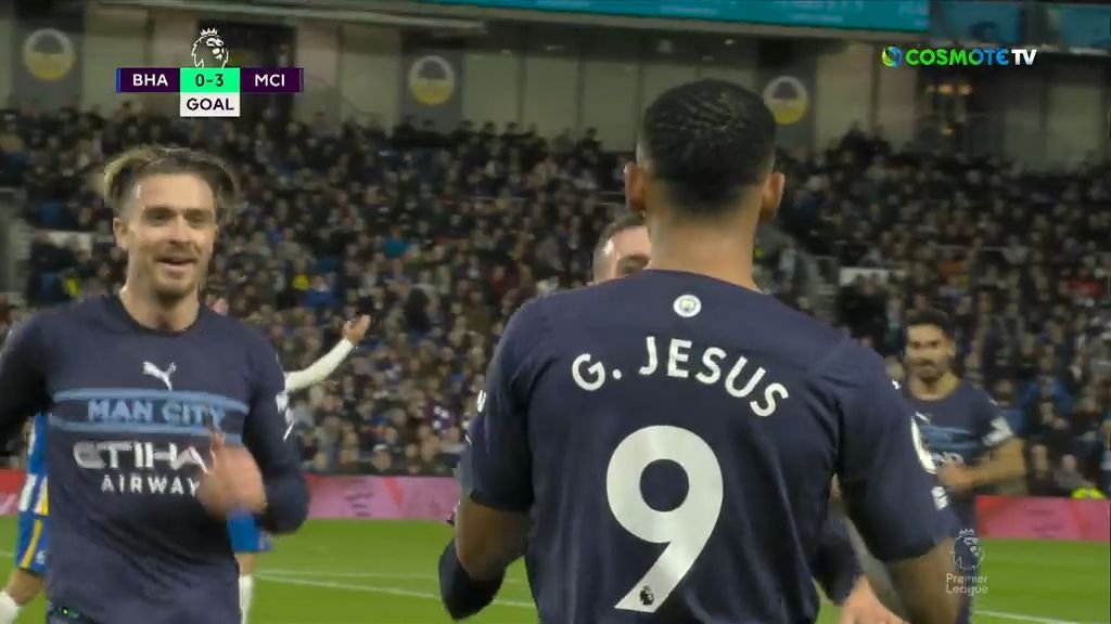 Μάλιστα στο 31’ ο Σάντσεθ έσωσε το πλασέ του Γκρίλις αλλά ο Ζέσους πλάσαρε και πάλι από το πέναλτι η μπάλα βρήκε και στον Φόντεν και η μπάλα κατέληξε στα δίχτυα της Μπράιτον για το 0-3.