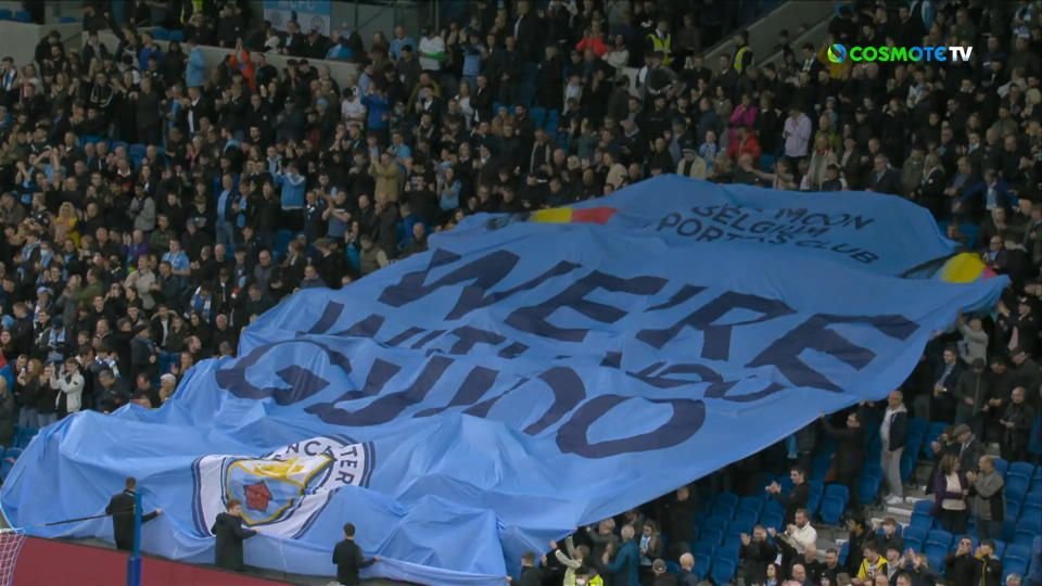 Τη στήριξη και την αλληλεγγύη στον Βέλγο φίλο της ομάδας έδειξαν και οπαδοί της Σίτι, που βρέθηκαν στις εξέδρες του γηπέδου της Μπράιτον, σηκώνοντας πανό που έγραφε "Είμαστε μαζί σου".