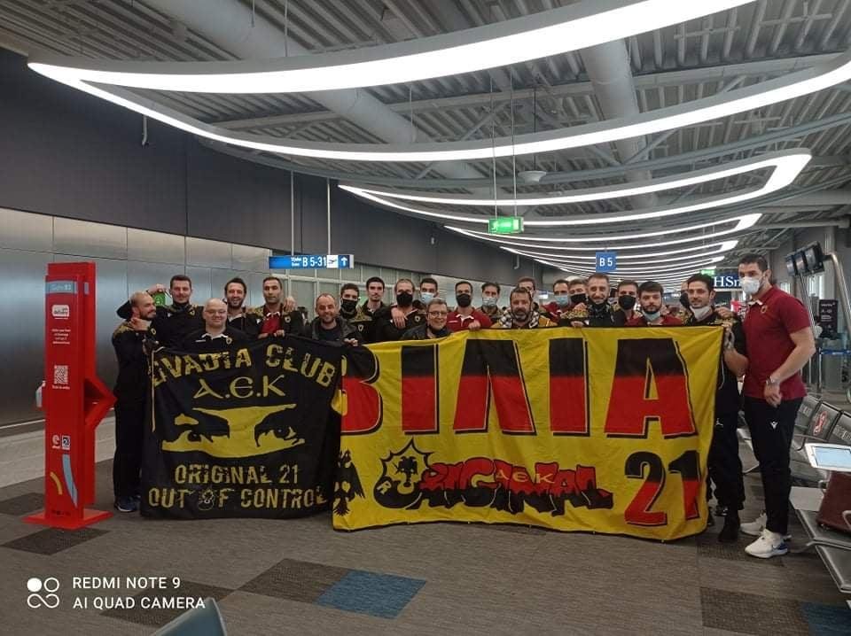 Και στη Γαλλία για το ματς με τη Νιμ η ΑΕΚ δεν θα είναι μόνη της. Η ομάδα χάντμπολ αντιμετωπίζει την Τρίτη τη Νιμ και μαζί με την αποστολή ταξίδεψαν φίλοι της ΑΕΚ. Χαρακτηριστική είναι η φωτογραφία από το αεροδρόμιο της Μασσαλίας όπου έφτασε η Ένωση το βράδυ της Δευτέρας, όπου παίκτες και κόσμος έγιναν ένα.