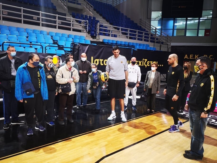 Μία διαφορετική προπόνηση πραγματοποιήθηκε σήμερα το πρωί στο ΣΠΙΤΙ μας. Μεγάλα παιδιά του Συλλόγου Γονέων Κηδεμόνων και Φίλων Α.μεΑ. «ΤΟ ΕΡΓΑΣΤΗΡΙ», που εδρεύει στα Άνω Λιόσια, οι νέοι φίλοι της Ομάδας μας, σε άκρως συγκινησιακό κλίμα είχαν την ευκαιρία να παρακολουθήσουν τις προσπάθειες των παικτών της «Βασίλισσας». Μετά το τέλος της προπόνησης έπαιξαν μπάσκετ με τους αθλητές της ΑΕΚ, οι οποίοι τους δώρισαν μία συλλεκτική κιτρινόμαυρη μπάλα μπάσκετ με τις υπογραφές τους. Η συνεργασία ΑΕΚ BC και «ΕΡΓΑΣΤΗΡΙΟΥ», η εκκίνηση της οποίας πραγματοποιήθηκε στις 14 Οκτωβρίου 2021 θα κλιμακωθεί το επόμενο διάστημα με ποικίλες δράσεις.