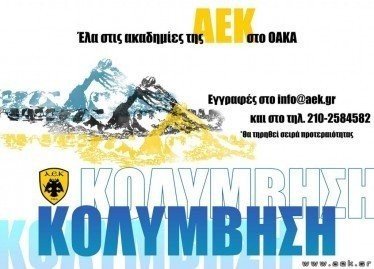 Οι Ακαδημίες Καλλιτεχνικής Κολύμβησης της ΑΕΚ αναζητούν νέα ταλέντα και όσοι ενδιαφέρονται να γίνουν μέλη της Ένωσης θα μπορούν να επικοινωνούν στο 210-2584582 και στο info@aek.gr. Η ΑΕΚ σε περιμένει! Εσύ θα λείπεις;