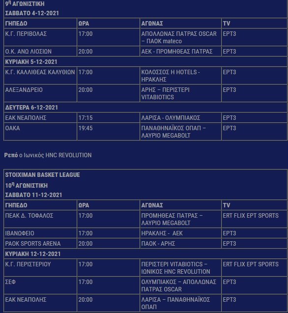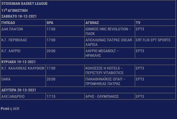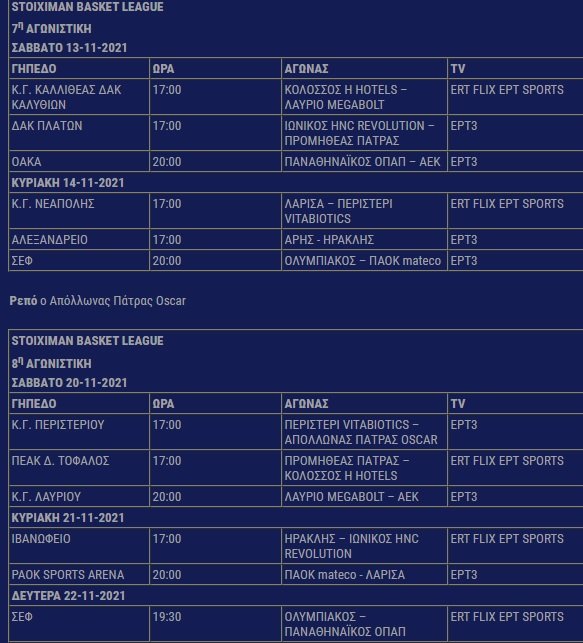 Ο ΕΣΑΚΕ ανακοίνωσε αλλαγές στο πρόγραμμα της Stoiximan Basket League από την 7η ως την 11η αγωνιστική του πρωταθλήματος.