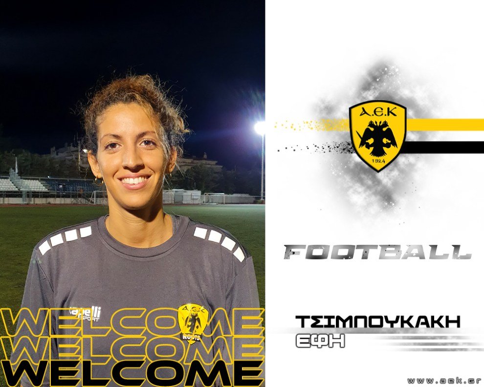 Η ΑΕΚ βρίσκεται στην ευχάριστη θέση να ανακοινώσει την έναρξη της συνεργασίας της με την Έφη Τσιμπουκάκη. Η 31χρονη (19/02/1990) στόπερ, που αγωνίζεται και ως επιθετικός, εντάσσεται στο δυναμικό της γυναικείας ομάδας Ποδοσφαίρου του Συλλόγου.