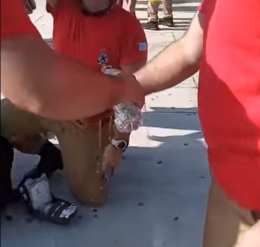 Το βίντεο δημοσίευσαν οι εποχικοί πυροσβέστες στη σελίδα τους στο Facebook. Το χέρι του πυροσβέστη φαίνεται μέσα στα αίματα, τη στιγμή που οι συνάδελφοί του σπεύδουν να τον βοηθήσουν.