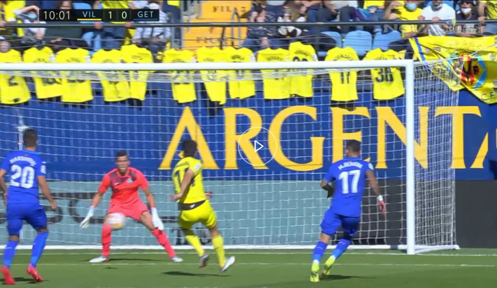 Μόλις στο 10ο λεπτό, η ομάδα του Ουνάι Έμερι άνοιξε το σκορ. Από τα αριστερά, ο Εστουπινιάν έβγαλε σέντρα, η μπάλα πέρασε από όλους και ο Τριγκέρος, με προβολή στο δεύτερο δοκάρι, έκανε το 1-0, στην επιστροφή του στο αρχικό σχήμα. Στο 21ο λεπτό, η Βιγιαρεάλ έφτασε κοντά στο 2-0, με τον Πάκο Αλκάθερ να βρίσκεται σε θέση βολής και τον γκολκίπερ Σόρια να τον νικάει. Στο 42' ο Ισπανός έστειλε την μπάλα στα δίχτυα, αλλά το γκολ δεν μέτρησε, αφού, με χρήση VAR, ο διαιτητής το ακύρωσε για οφσάιντ. Σε γενικές γραμμές, ο Σόρια και το VAR επέτρεψαν στη Χετάφε να είναι μέσα στο παιχνίδι, μετά το πρώτο 45λεπτο.